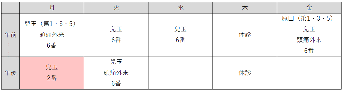 外来診療体制の維持と効率化を目的に、令和8年3月2日(月)から月曜日午後の脳神経外科診察室を6番ブロックから2番ブロックに変更させていただきます。